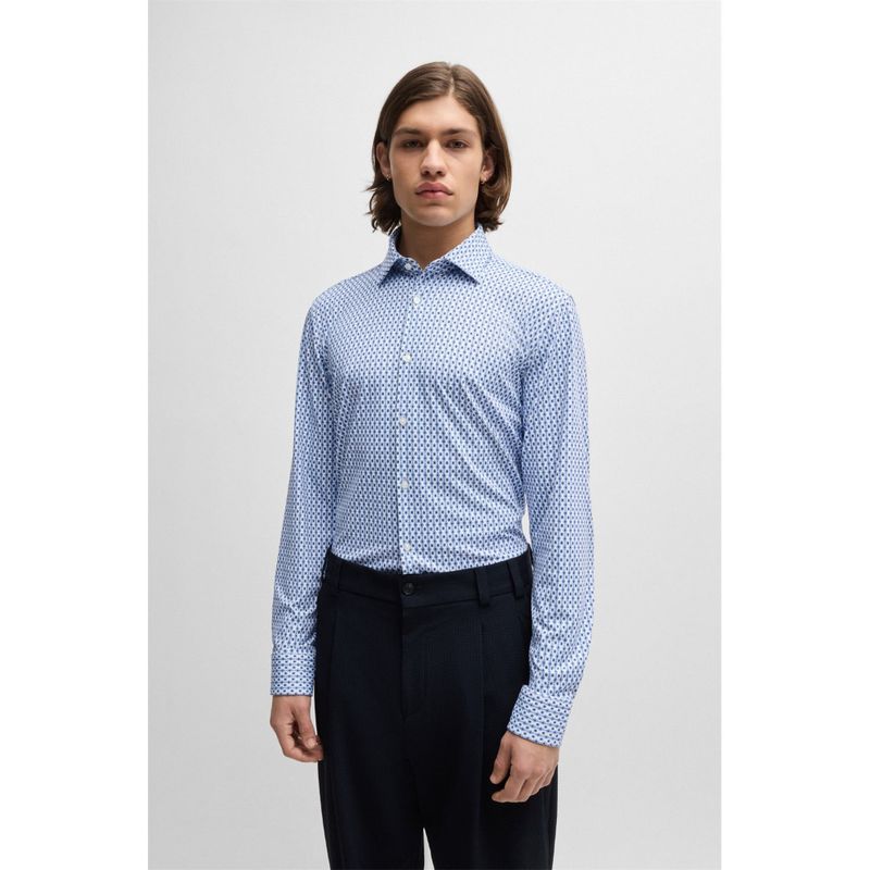 Una camisa avanzada con un corte slim de HUGO. Este diseño presenta un estampado geométrico y está confeccionado en tela elástica de alto rendimiento.
