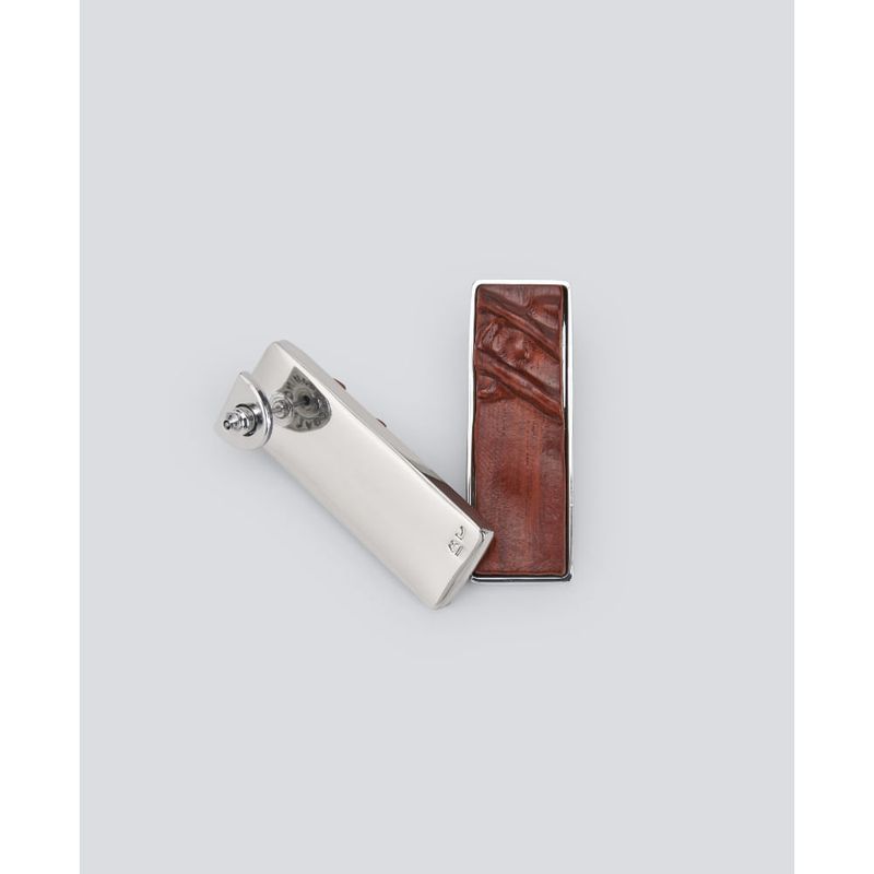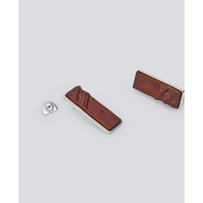 Pendiente en madera y zinc. Motivo tijera. Cierre de broche. Zinc 50%, Madera 40%, Hierro 10%.
