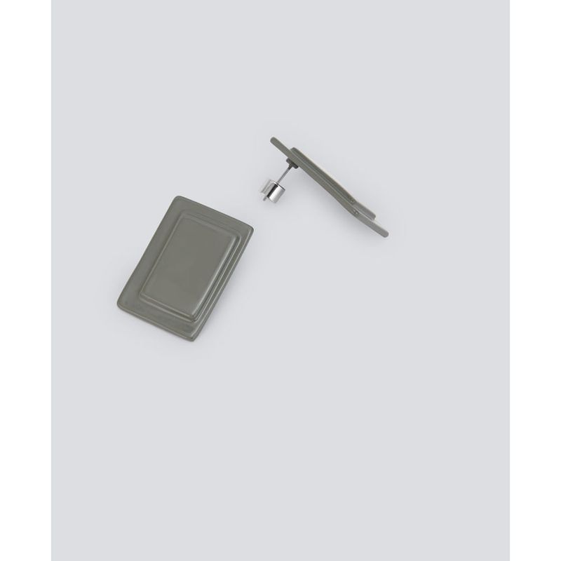 Pendiente lacado rectangular. Relieve. Cierre con broche. Zinc 80%, Resina 20%.