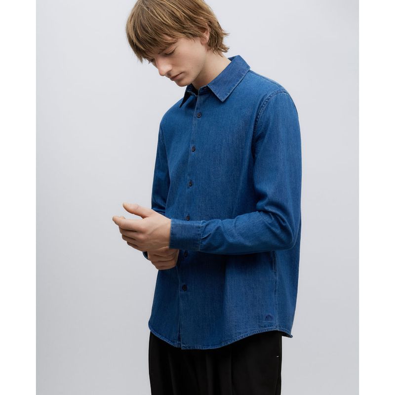 Camisa denim algodón azul hombre. Cuello solapa abotonado. Cierre botones. Logotipo bordado en la sardineta de la manga. Bajo redondo. Regular fit. Composición:algodon 100%