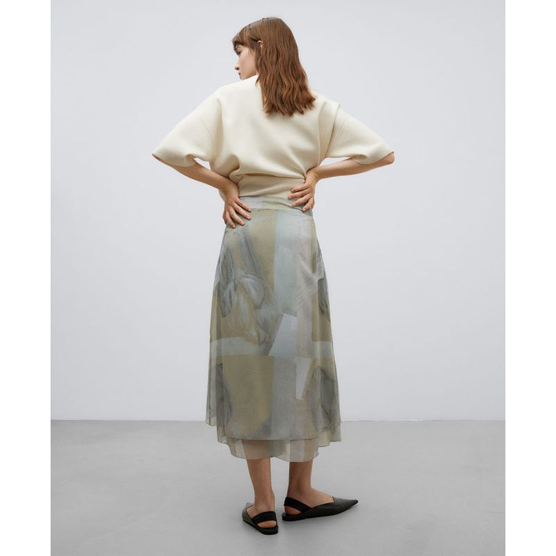 Falda midi semitransparente mujer. Doble capa. Gesto en el delantero. Composición:exterior : poliester 100% forro : poliester 100%