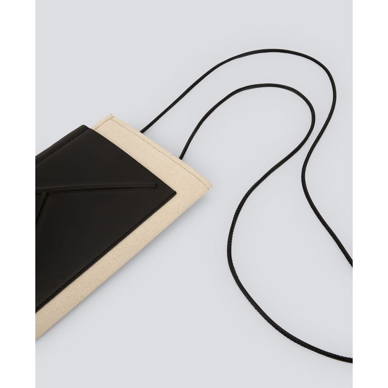Portamóviil doble textura mujer. Cuerpo en canvas. Bolsillo delantero en piel. Tarjetero en piel. Asa larga regulable. Logo grabado. Temática Ágora. Composición:exterior : piel bovina 100% principal : algodon 100% , secundario : poliester 100%