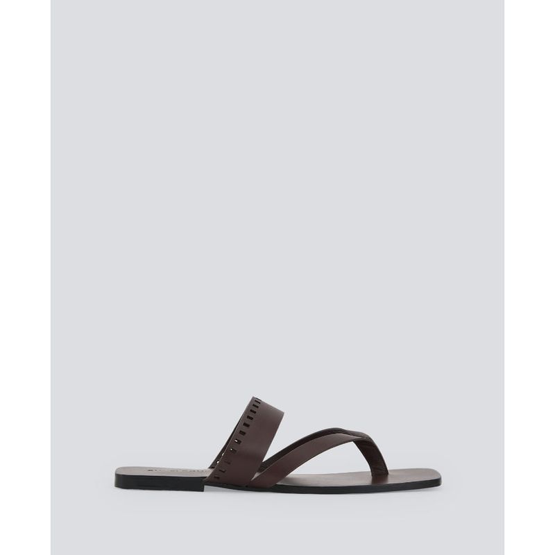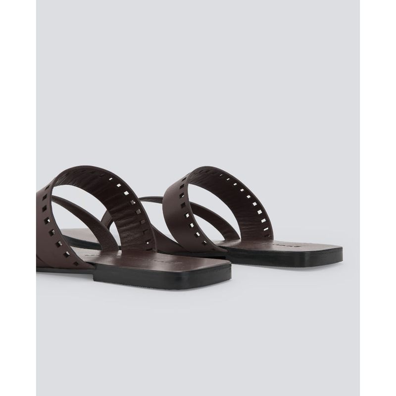 Sandalia plana en piel burdeos mujer. Trabajo de troquelado en tira. Suela antideslizante. Composición: empeine : piel bovina 100% , forro : piel ovina 100% , plantilla : piel bufalo 100% , suela y tacón : resina 100%