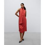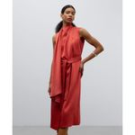 Vestido asimétrico pieza frontal en poliéster reciclado mujer. Manga sisa. Cinturón. Largo maxi. Composición:poliester 100%