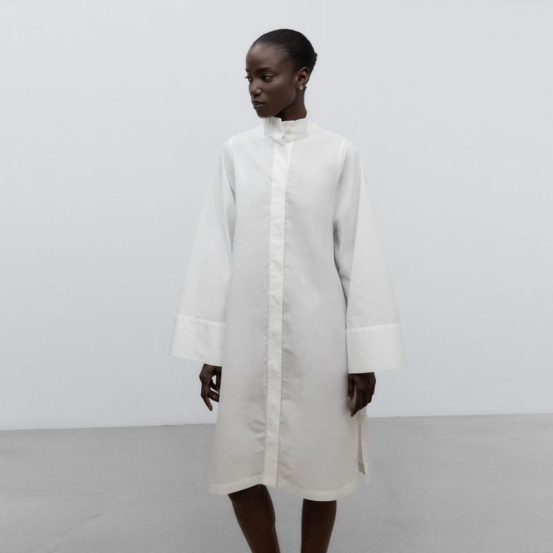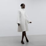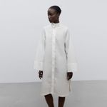 Vestido camisero en algodón blanco mujer. Cuello Mao. Manga larga amplia. Composición:algodon 100%