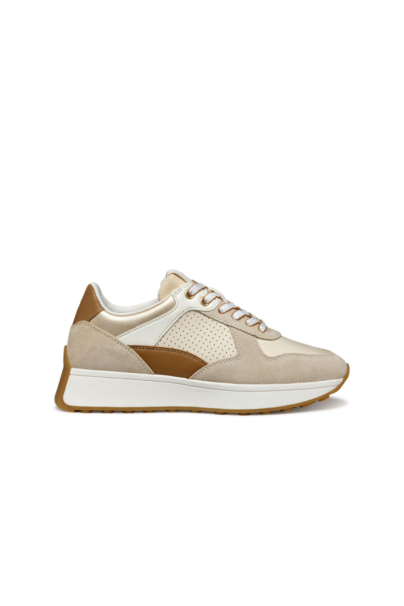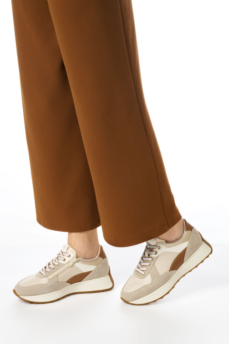 Concebida para valorizar los looks informales con un toque activo, Amabel es una deportiva low-cut para mujer que ofrece confort y transpirabilidad. Su particular empella juega con los contrastes de la napa y la gamuza, haciendo que sea un modelo aún más