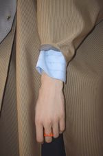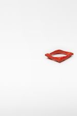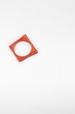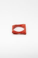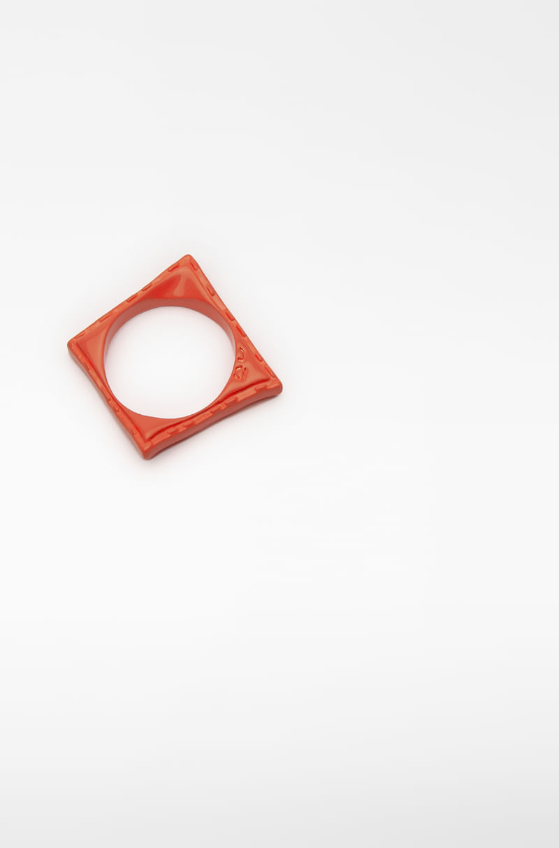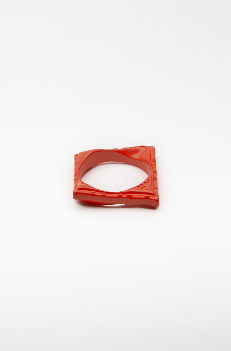 Anillo cuadrado metal lacado naranja mujer. Forma inspirada en una colchoneta. Logo grabado.