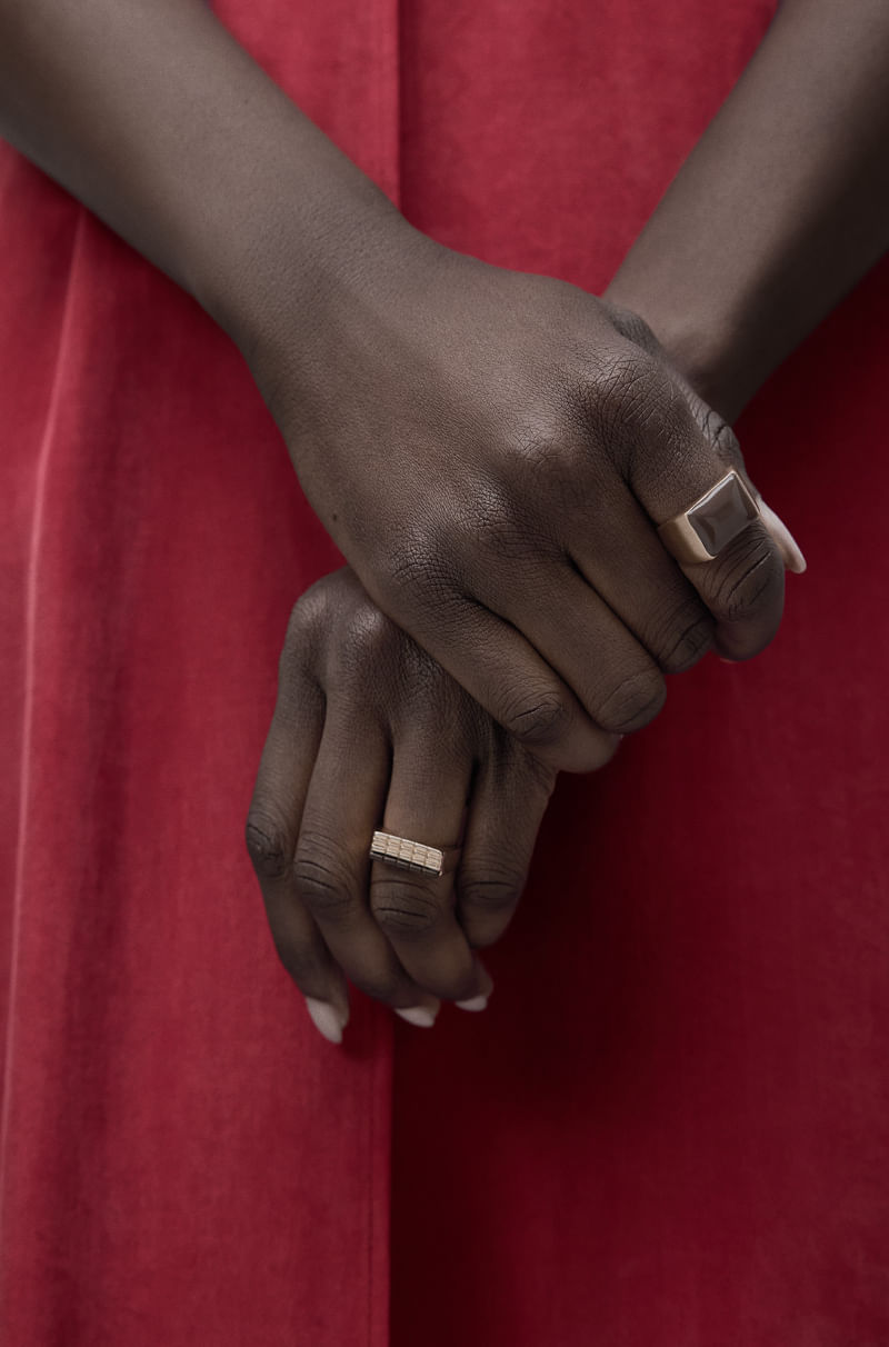 Anillo sello metálico mujer. Acabado dorado y en resina. Logo grabado en interior.