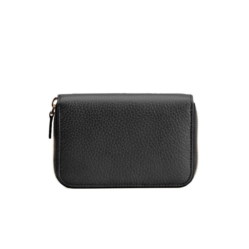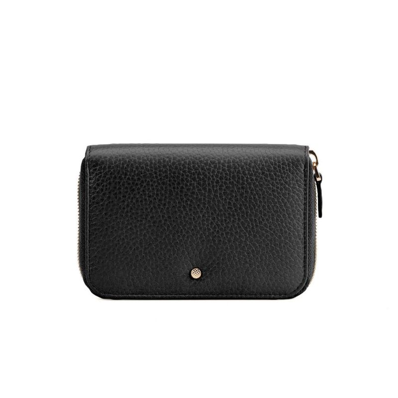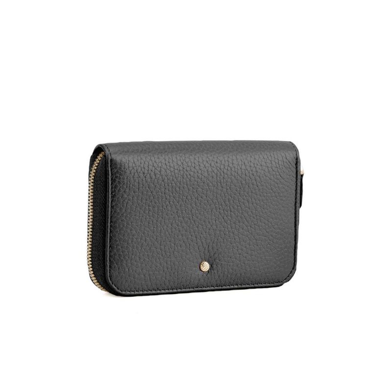 Cartera mediana de mujer con cierre de cremallera, realizada con piel abatanada suave y resistente. El interior de esta cartera espaciosa y versátil está bien organizado para guardar tarjetas, billetes, monedas y documentos. Medidas: L 15 cm. x H 9,5 cm. x W 2,5 cm. OUTSIDE 100% tumbled cow leather, INSIDE 100% polyester, zinc/iron