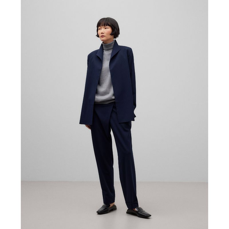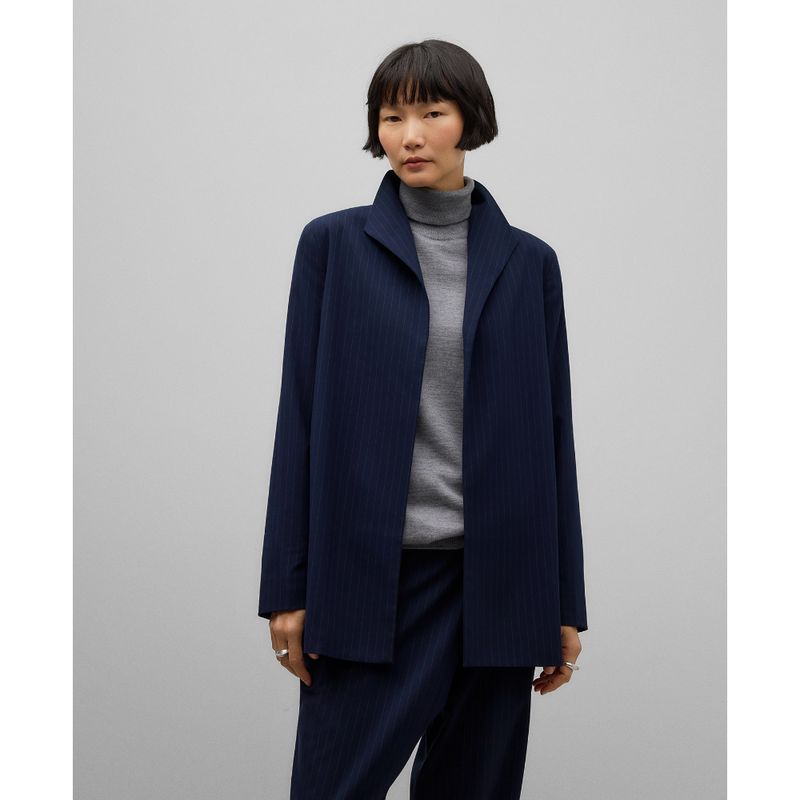 Blazer abierta rayas mujer. Manga larga. Puño con tres botones. Cuello solapa. Composicion General: exterior : poliester 70% viscosa 27% elastano 3%;forro : poliester 49% viscosa 45% elastano 6% Composiciòn Exterior; exterior : poliester 70% viscosa 27%