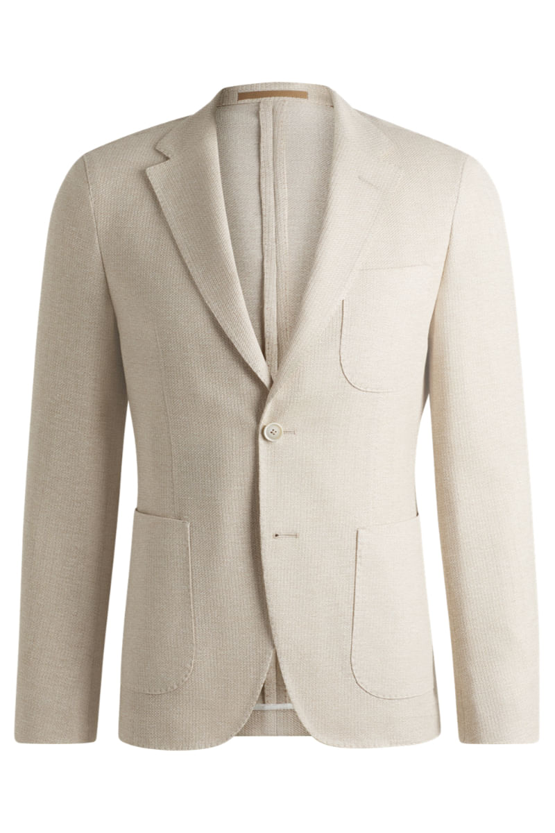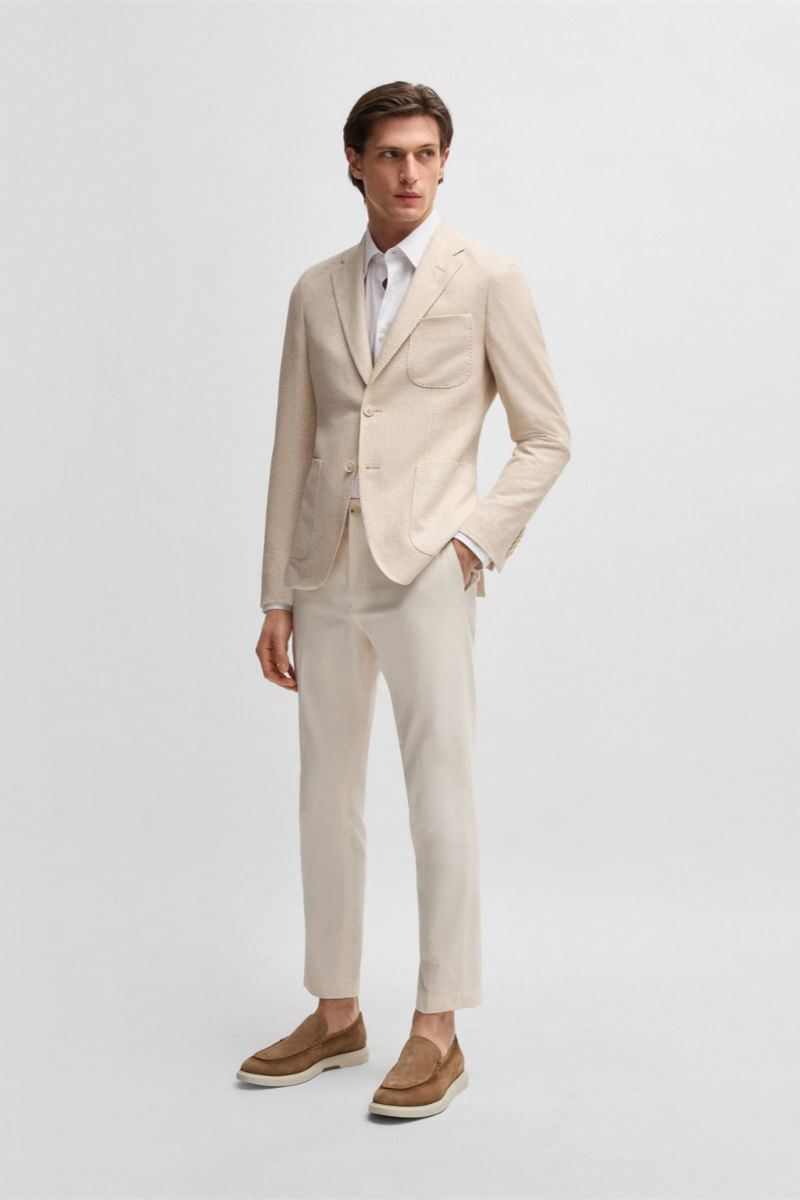 Este verano, cree looks contemporáneos con este blazer slim fit. El sutil estampado aporta un carácter moderno a esta prenda clásica de lino y algodón.
