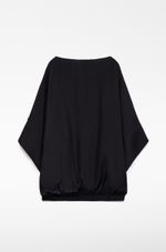 Blusa amplia negra con viscosa responsable mujer. Escote barco. Manga japonesa al codo. Pieza en bocamanga. Bajo fruncido con goma elástica en interior.
