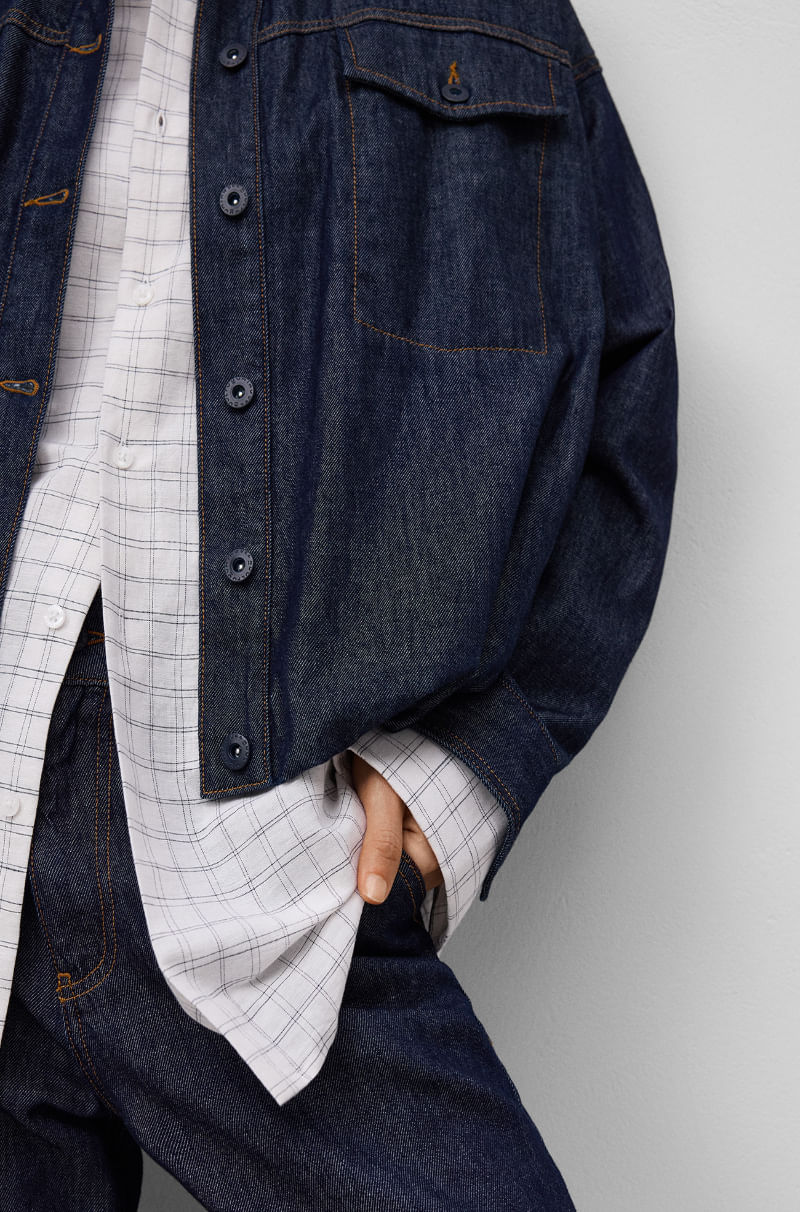 Bomber denim algodón mujer. Cuello solapa. Manga larga con puño ancho. Botonadura frontal. Bolsillos con solapa y botón en pecho. Canesú en espalda. Bajo elástico redondeado.