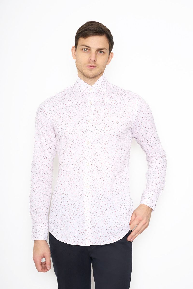 Camisa en corte slim fit de tejido dobby de algodón elástico con estampado.