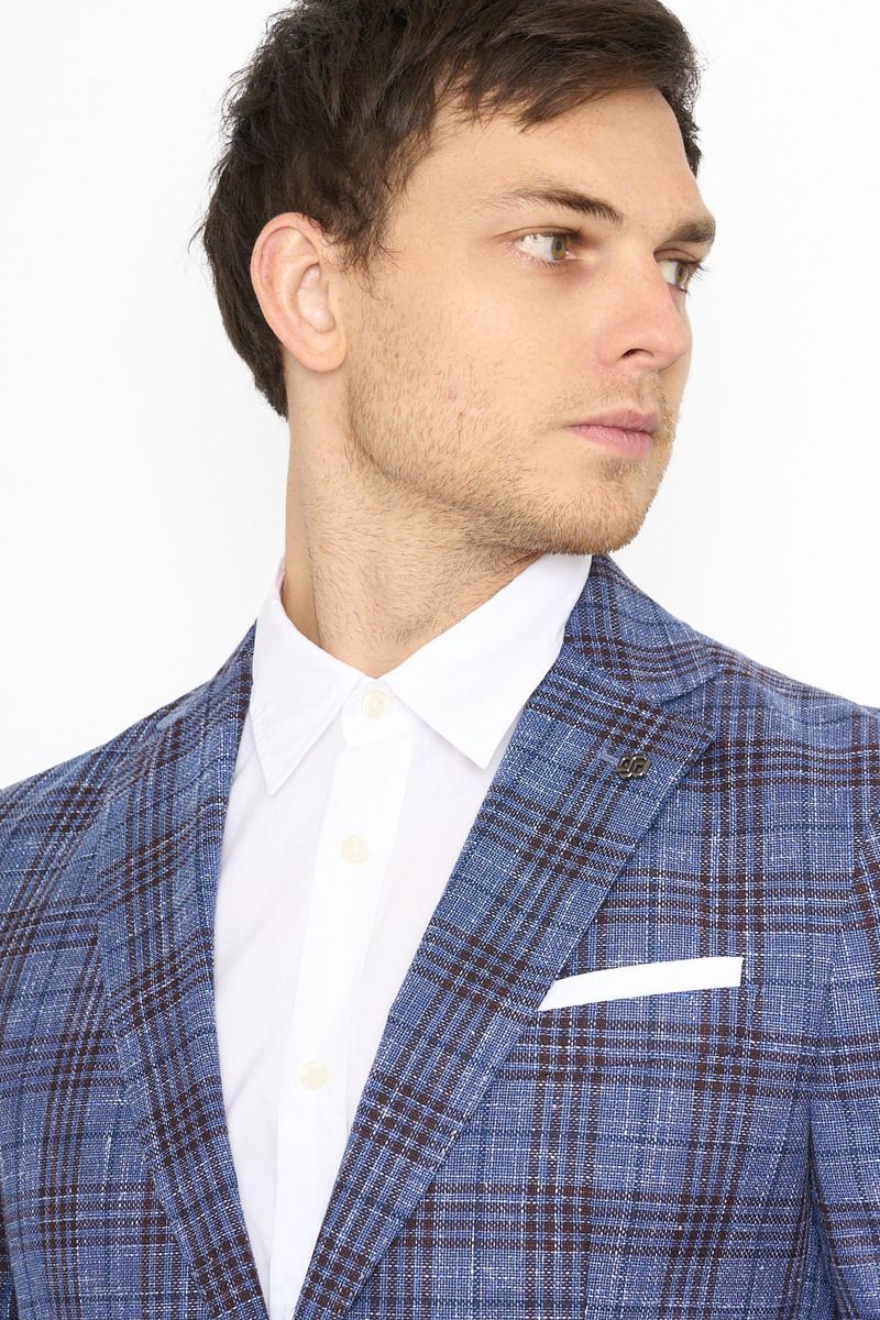 Saco casual en mezcla de lana, algodón y lino. Buscamos continuamente formas más responsables de producir nuestros productos.