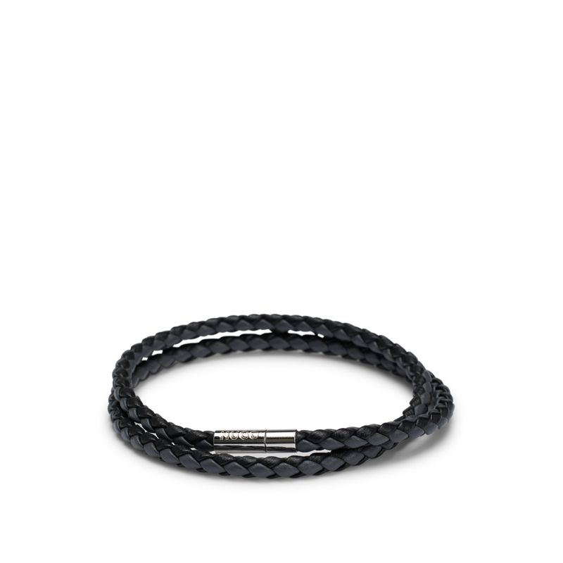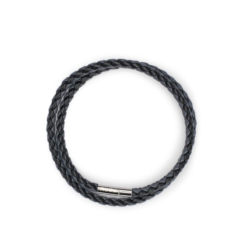 Brazalete bicolor de doble vuelta en piel italiana trenzada
