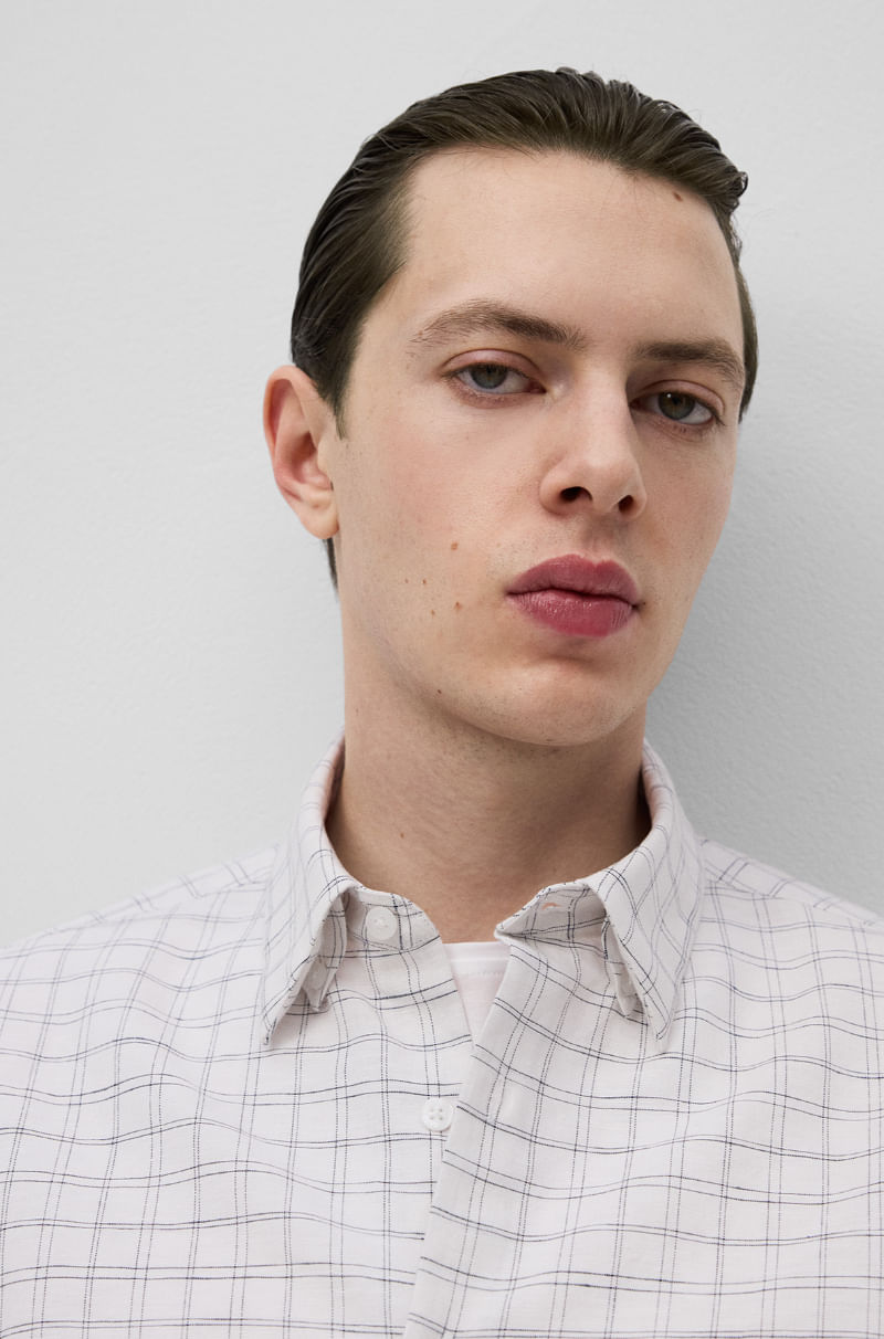 Camisa cuadros con lino europeo hombre