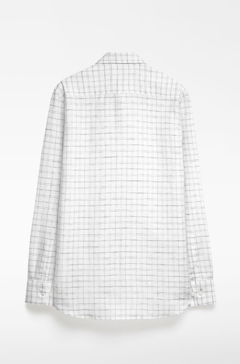 Camisa cuadros lino europeo y algodón hombre. Regular fit. Cuello solapa. Manga larga. Botonadura frontal.