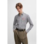 Camisa de rayas versátil de HUGO. Este diseño de manga larga presenta un detalle de logotipo y un corte relajado en popelina de algodón suave.