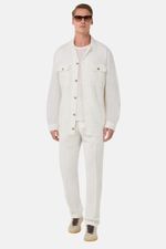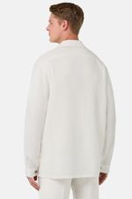 Sobrecamisa con cuello abierto y dos bolsillos en el pecho. Tejido de lino puro. El lino con el que está tejida ha sido lavado en prenda. El color puede variar ligeramente tras un lavado normal. Los botones lucen el logotipo de la marca.