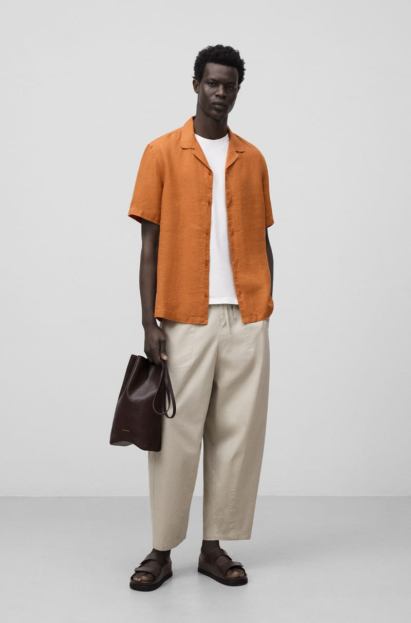 CAMISA MANGA CORTA NARANJA LINO