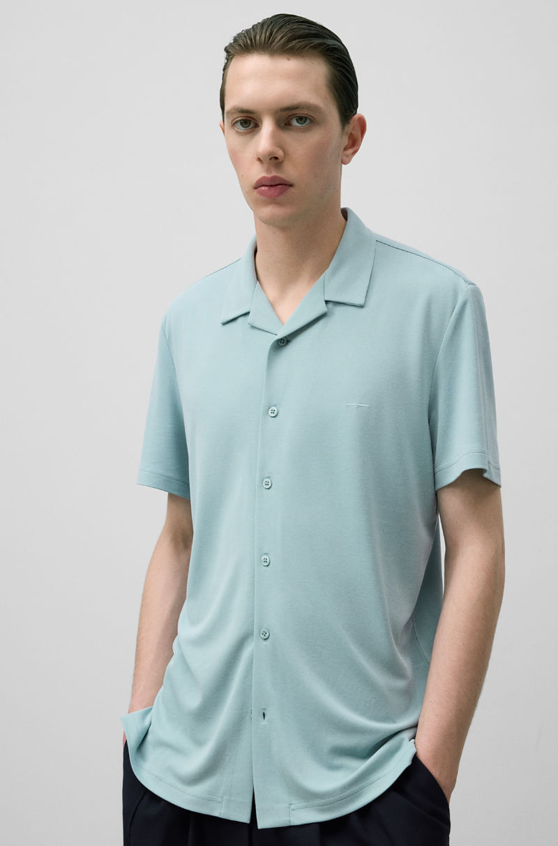 CAMISA MANGA CORTA VERDE AGUA MARINA MODAL POLIESTER