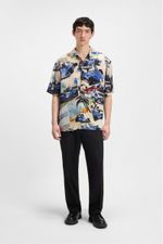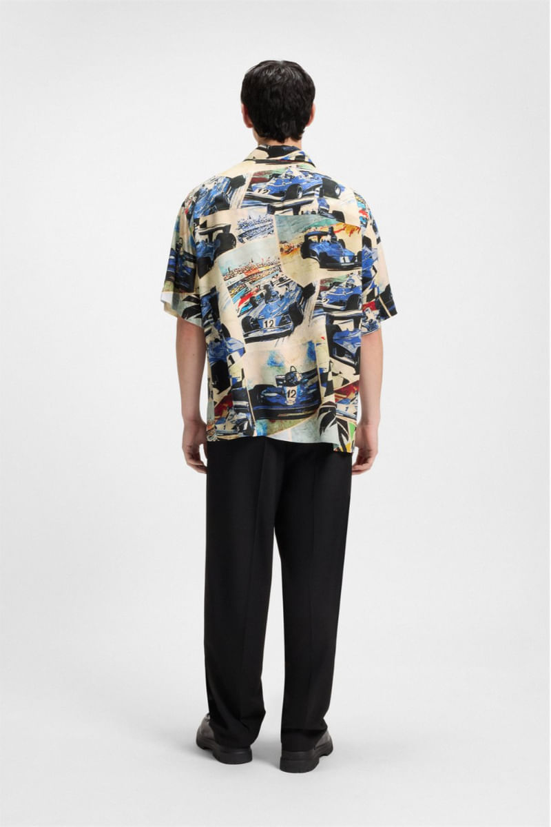 Una camisa oversize fit. Esta prenda de manga corta con ilustración vintage de carreras está elaborada en popelín fluido.