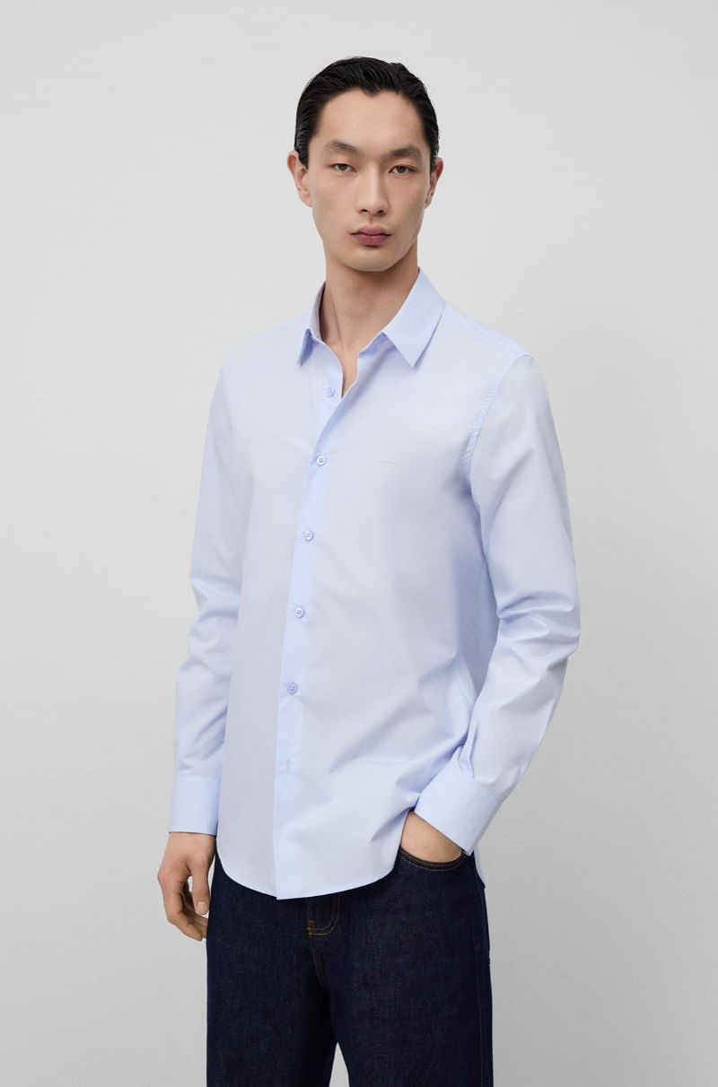 Camisa regular fit algodón hombre. Manga larga. Cuello solapa. Botonadura frontal. Canesú en espalda. Logo bordado en pecho.