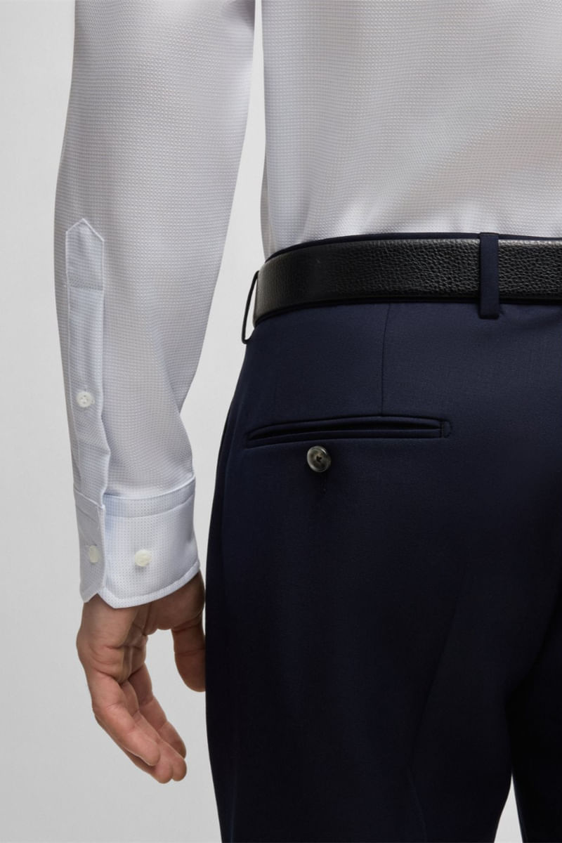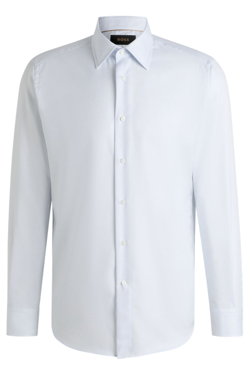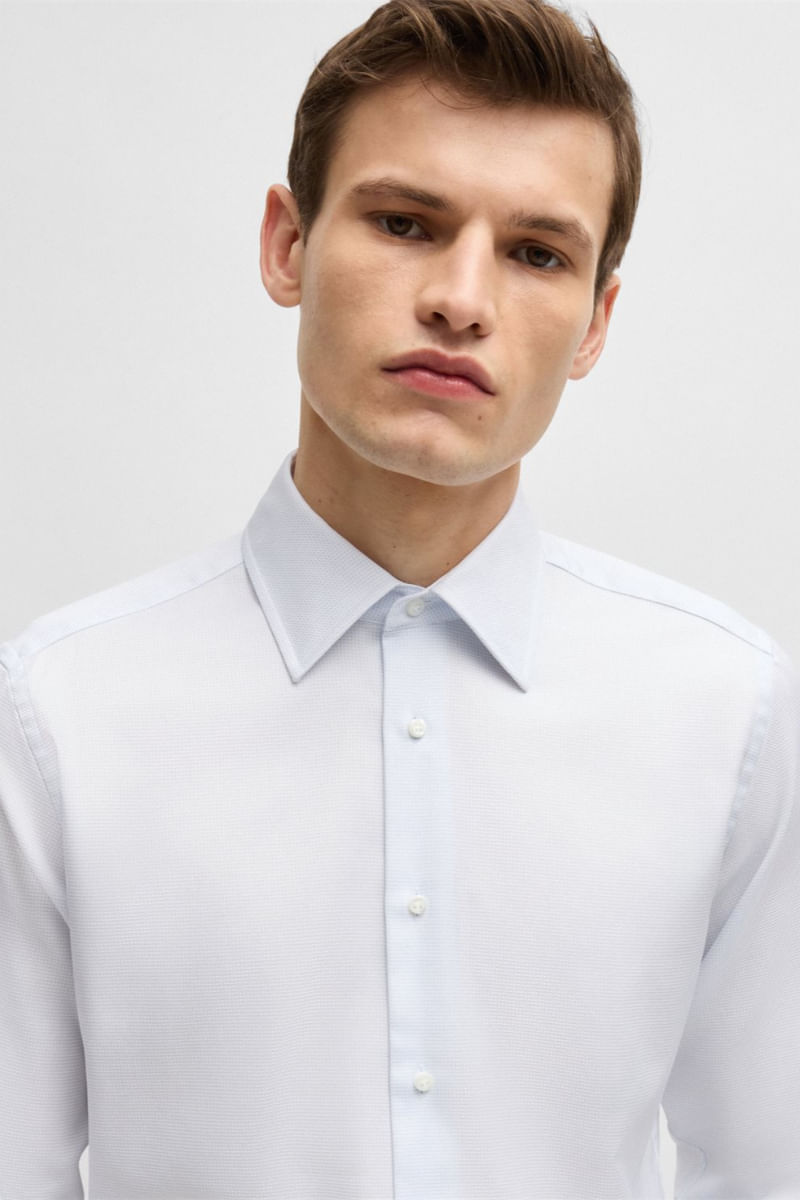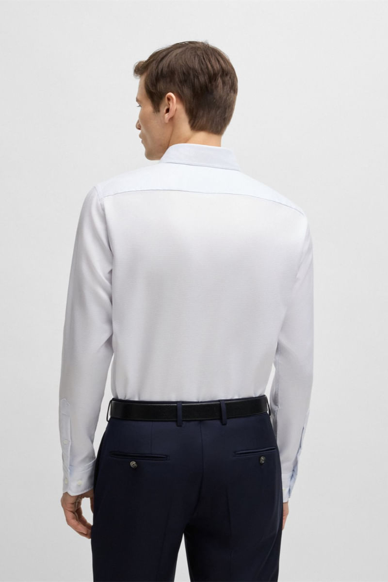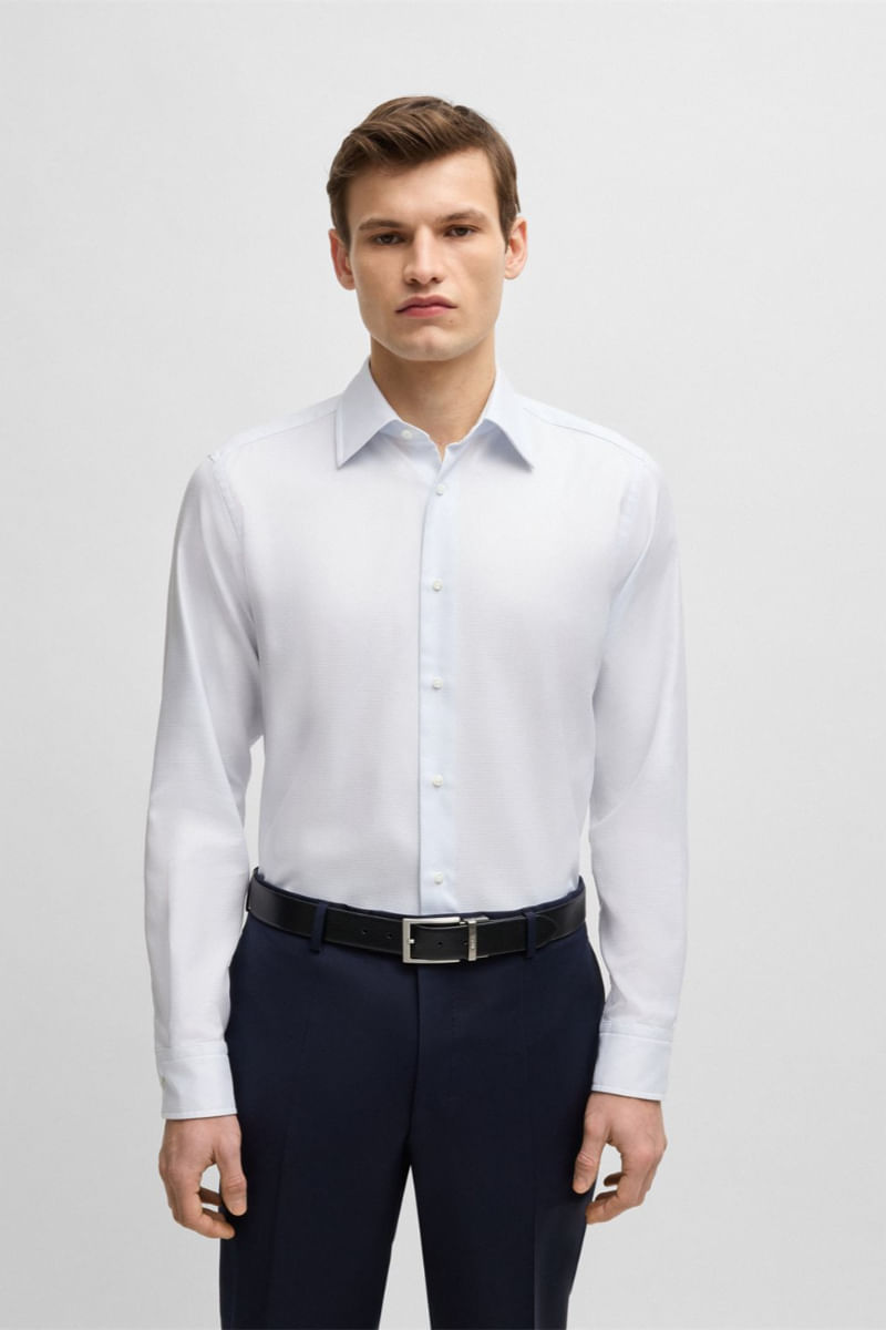 Esta camisa es una opción business sofisticada, y está elaborada con tejido hecho en Italia que no necesita planchado. De corte recto, con una estructura exquisitamente tejida.
