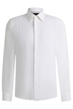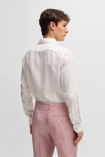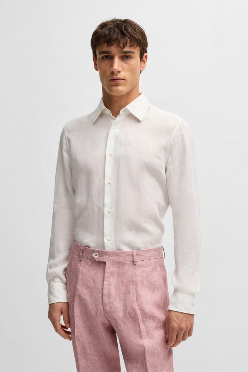 Esta camisa con botones de nácar pulido en una opción refinada. Confección en lino italiano. Acabado con aloe vera con propiedades que calman la piel.