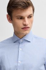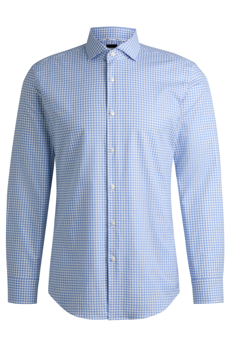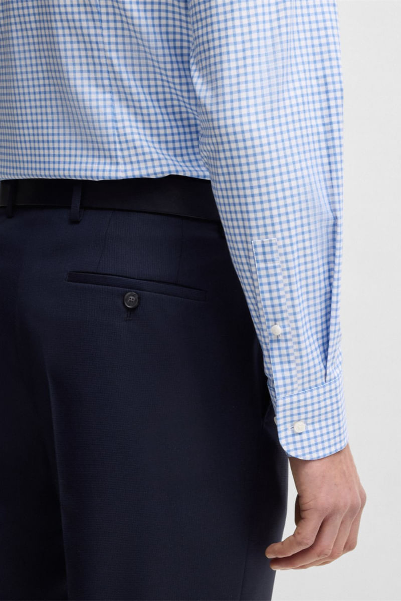 Ponga al día su colección business con esta camisa slim fit estampada con un exquisito motivo a cuadros. El algodón elástico de planchado fácil ofrece un tacto suave y flexible.
