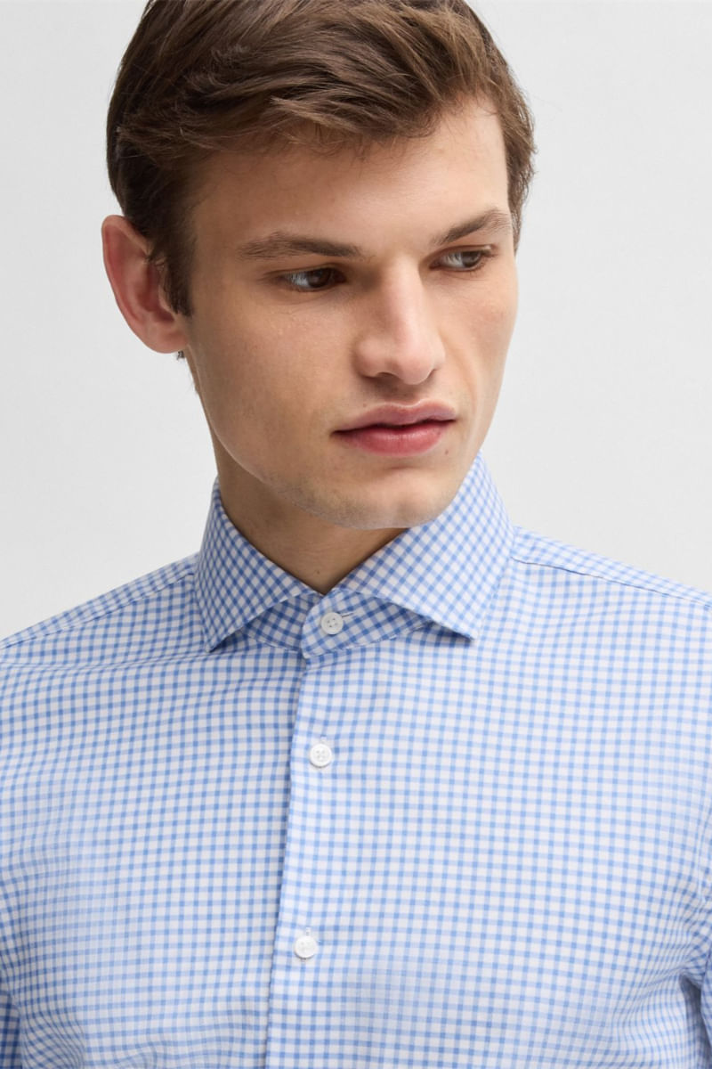Camisa slim fit en algodón elástico a cuadros de planchado fácil