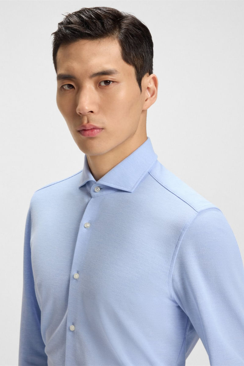 Camisa slim fit en punto piqué de algodón
