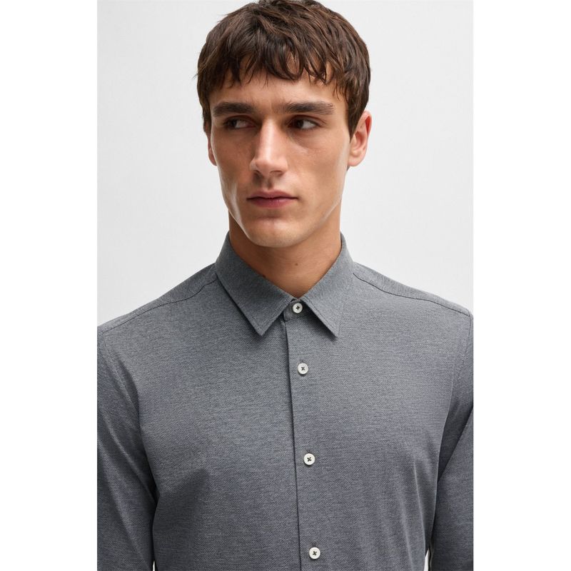 Camisa de corte entallado en jersey elástico de alto rendimiento jaspeado.