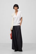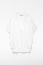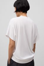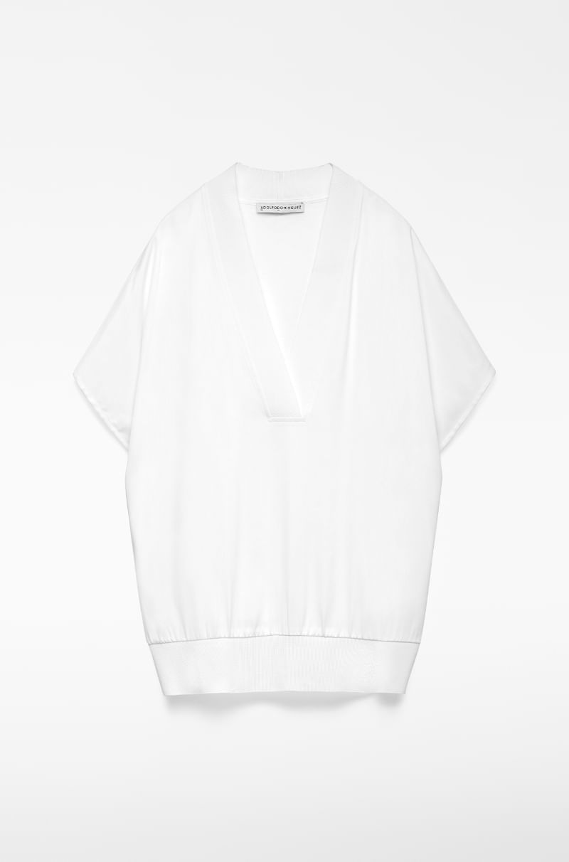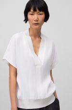 Camiseta doble calidad mujer. Delantero en viscosa brillante. Espalda en punto. Manga corta caída. Cuello pico. Remates en canalé.