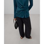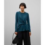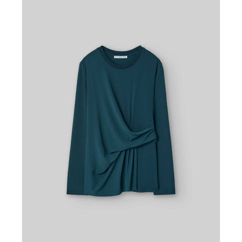 Camiseta entallada poliéster reciclado mujer. Manga larga. Cuello caja elástico. Gesto drapeado en cintura. cuerpo : poliester 94% elastano 6% , cuello : viscosa 90% elastano 10%