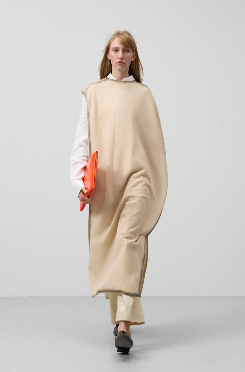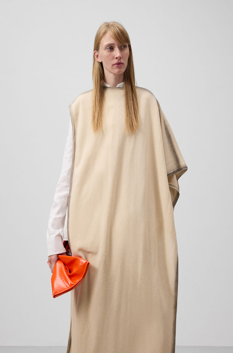 Capa asimétrica en punto extrafino mujer. Cuello caja. Efecto spray en remates.