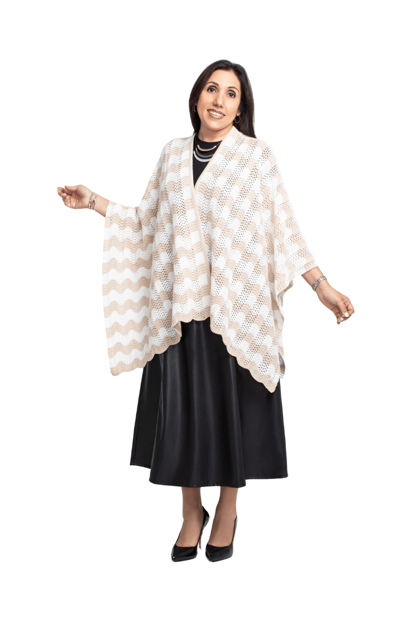 Capa con rallas en dos combinaciones de colores, de textura ligera y envolvente Este tipo de Capa, puede ser utilizada en noches de verano con viento o frio, con vestidos casuales o elegantes y con ropa casual. Debe ser lavada en lavanderia.