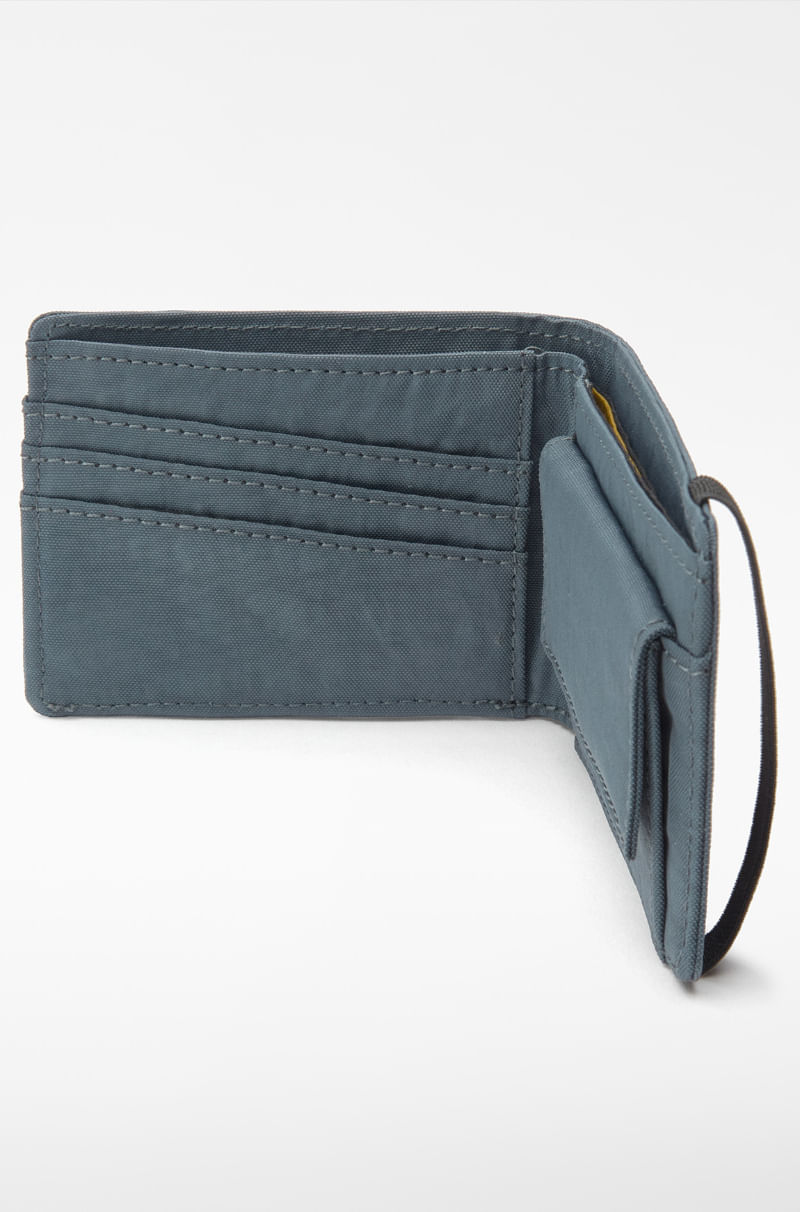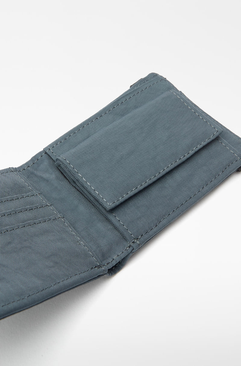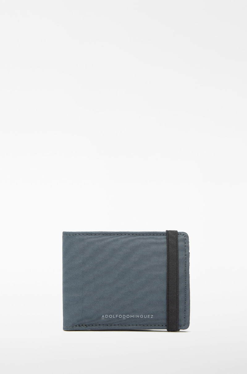 Cartera nailon reciclado hombre. Cierre elástico. Compartimento interior para billetes. Tarjetero interior. Bolsillo interior para monedas con cierre invisible. Logo estampado.