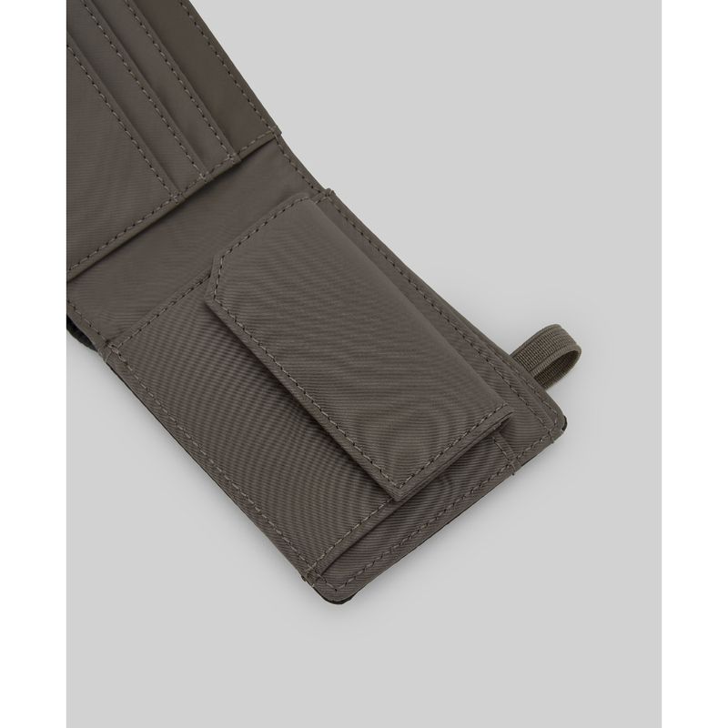 Cartera nailon negra hombre. Compartimento interior para billetes, tarjetero y bolsillo para monedas. Cierre elástico a contraste. Logo grabado. exterior : poliester 100% / forro : poliester 100%