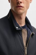 Casaca bomber de estilo elegante con un relleno ligero. Esta casaca regular fit repelente al agua está mezclada con lana e incluye detalles de Nobuk, las alas de ASTON MARTIN y un logo perforado en el interior de la tapeta. BOSS x ASTON MARTIN muestra una