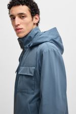 Casaca con capucha en sarga de algodón y seda
