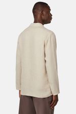 Casaca de lino Bond con cuello camisero. Los botones lucen el logotipo de la marca. La prenda luce la B de Boggi's en el bajo izquierdo.