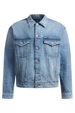 Una casaca auténtica diseñada en denim azul lavado a la piedra. Este modelo regular fit presenta un efecto vintage, bolsillos con solapa en pico en el pecho y detalles de logo.