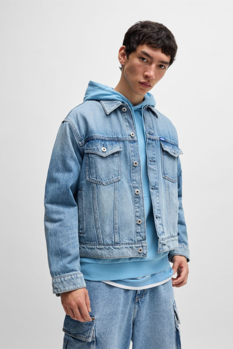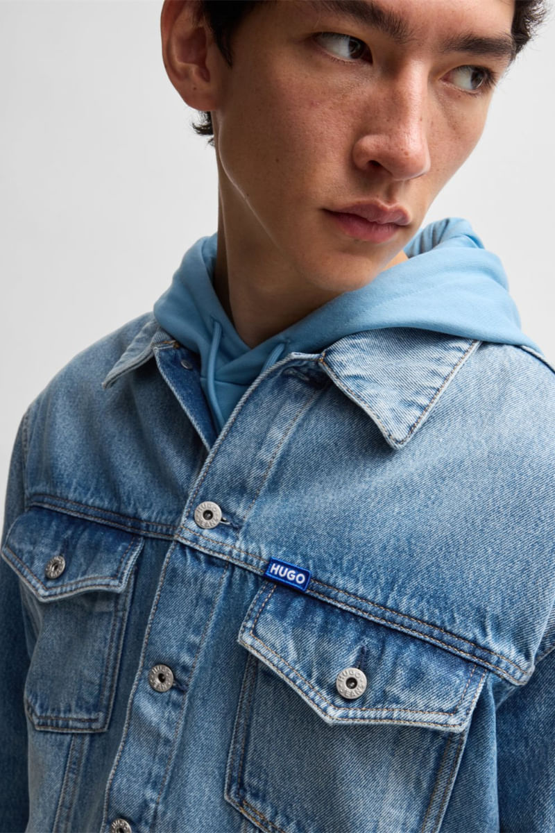 Casaca regular fit de tejido denim con detalles de logo