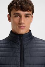 Esta casaca slim fit de acabado repelente al agua se puede plegar para guardarla sobre la marcha. Mezcla de guateado oblicuo y recto.