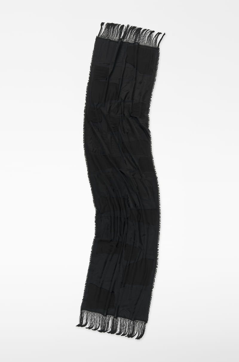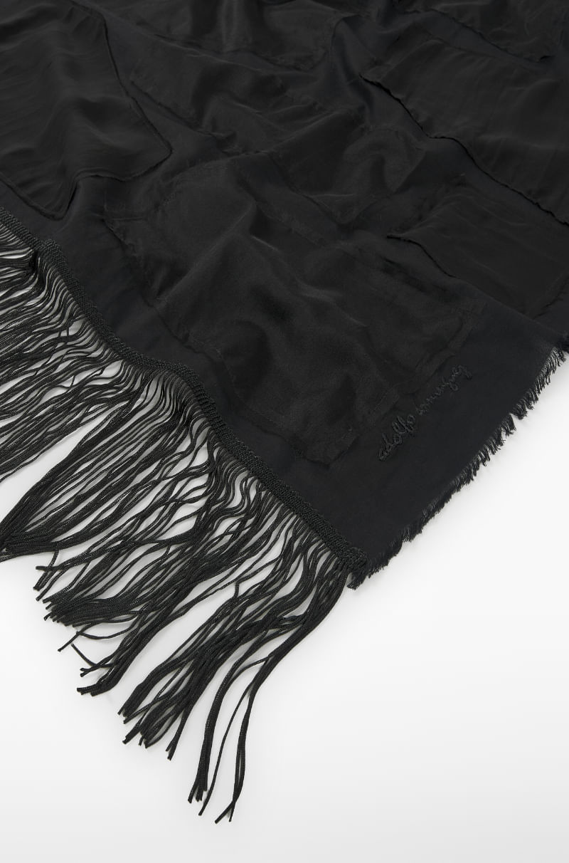 Chal patchwork negro mujer. Rematado en flecos. Logo bordado.
