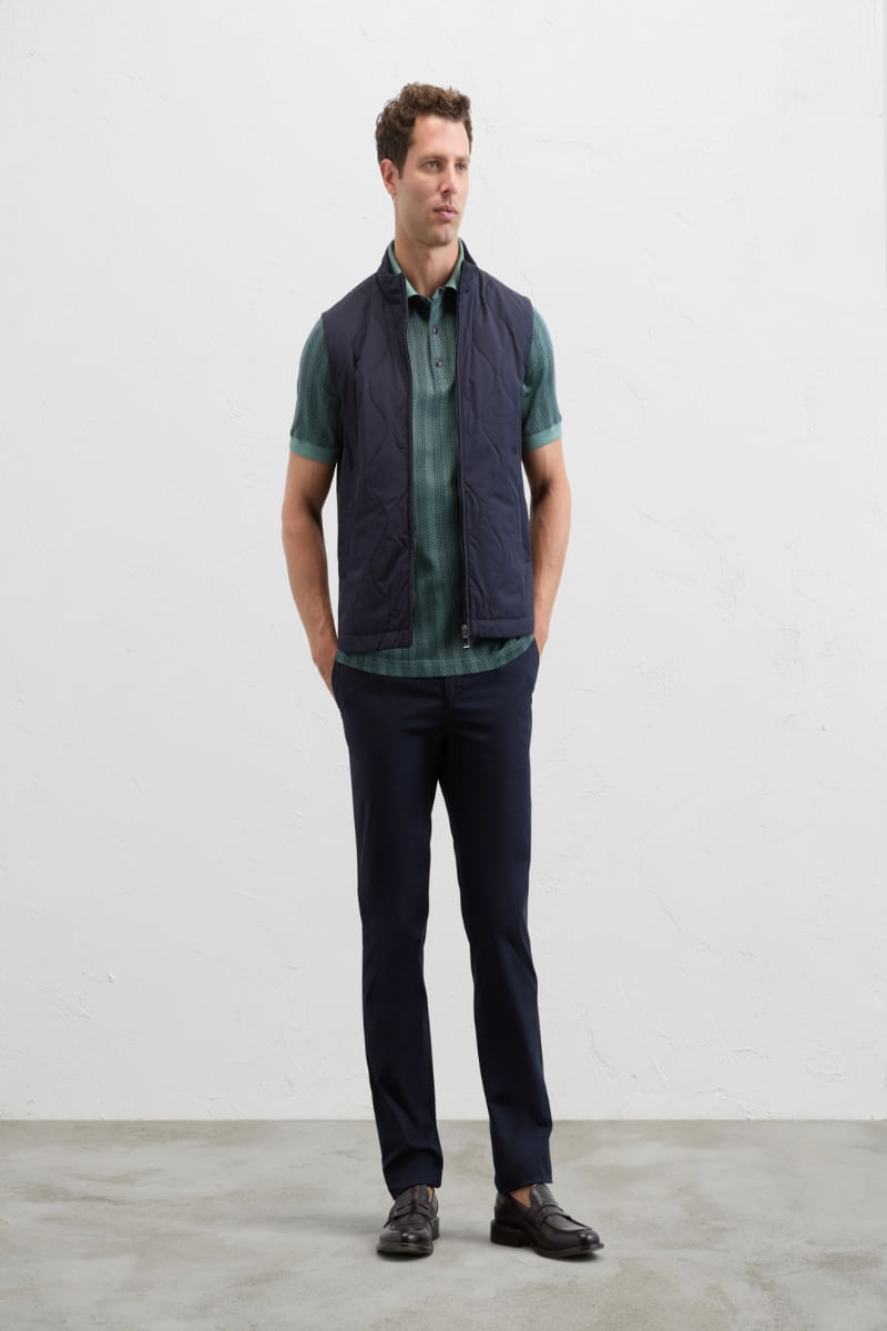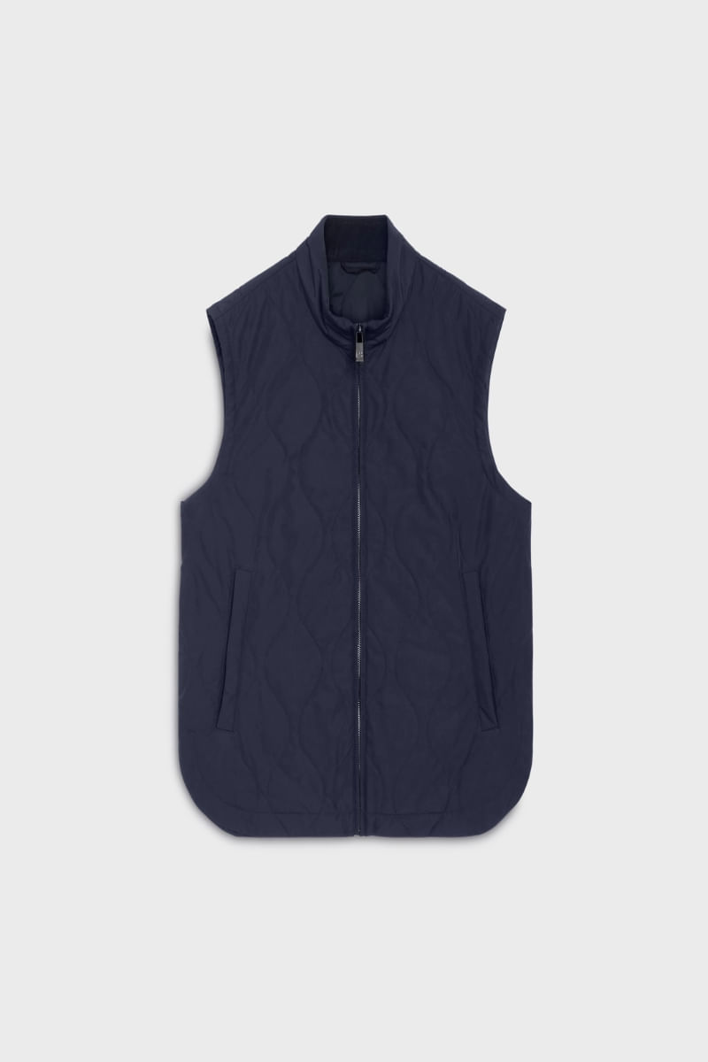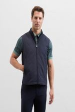 Este práctico y funcional chaleco azul marino de nailon y tejido técnico ofrece un confort térmico óptimo gracias a su confección acolchada, adaptándose fácilmente a looks casuales y deportivos.