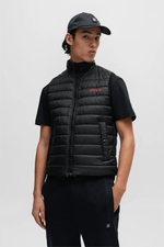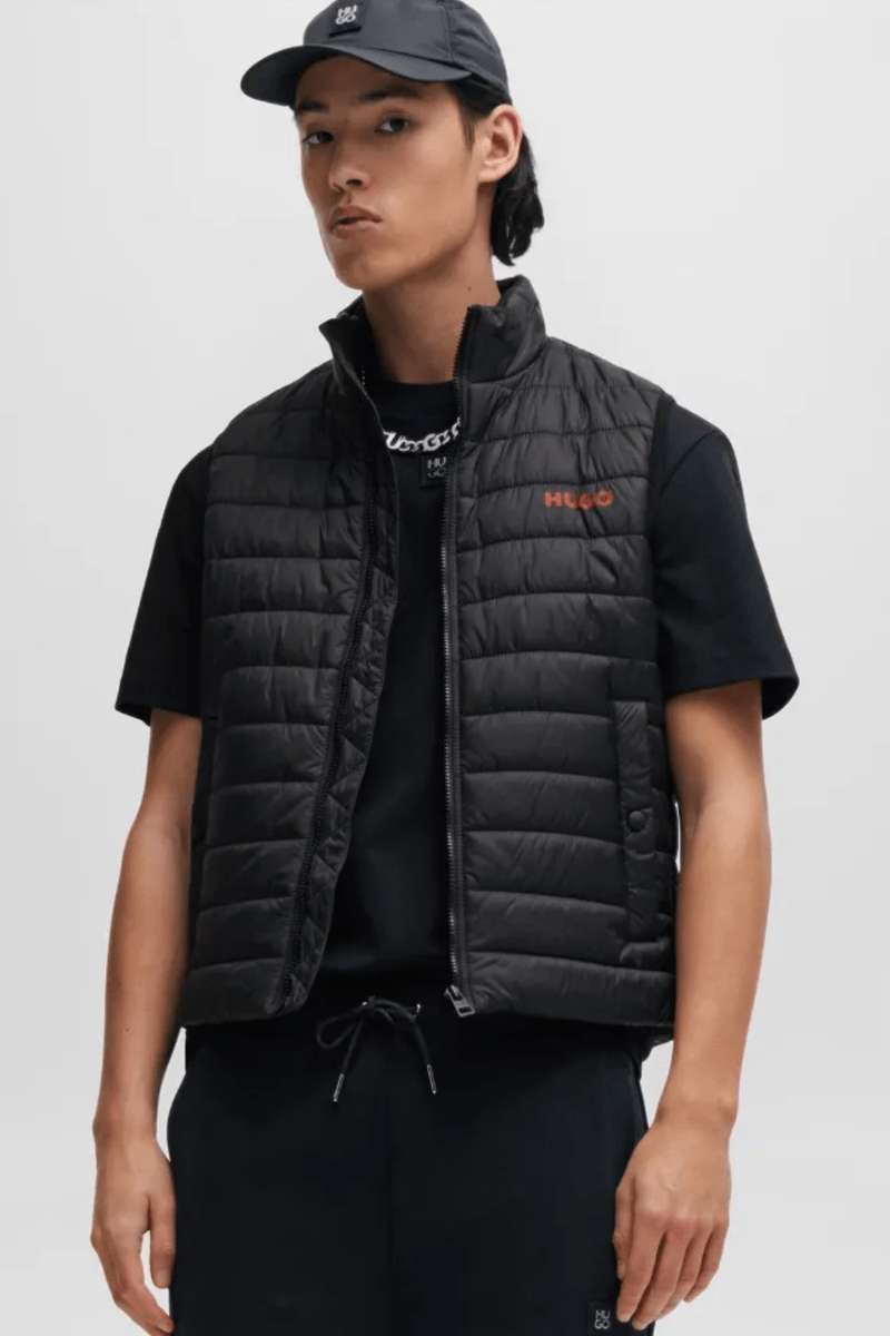 Un chaleco acolchado ligero de corte entallado en material repelente al agua con un logo en contraste en el pecho. Para nuestros productos RESPONSABLES, utilizamos siempre al menos un 60% más de materias primas sostenibles.