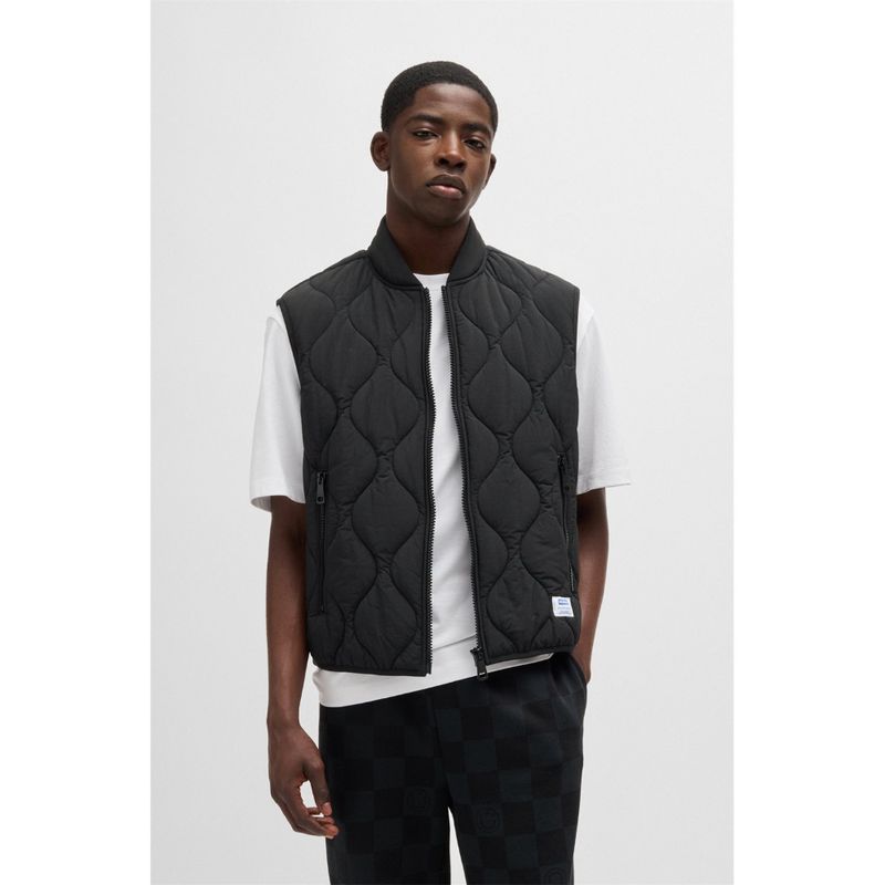Un chaleco repelente al agua de corte slim con acolchado, cuello alto y parche con logotipo tejido de HUGO.